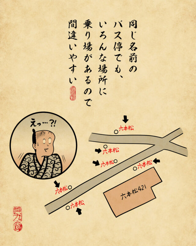 1. 同じ名前のバス停でも、いろんな場所に乗り場があるので間違いやすい