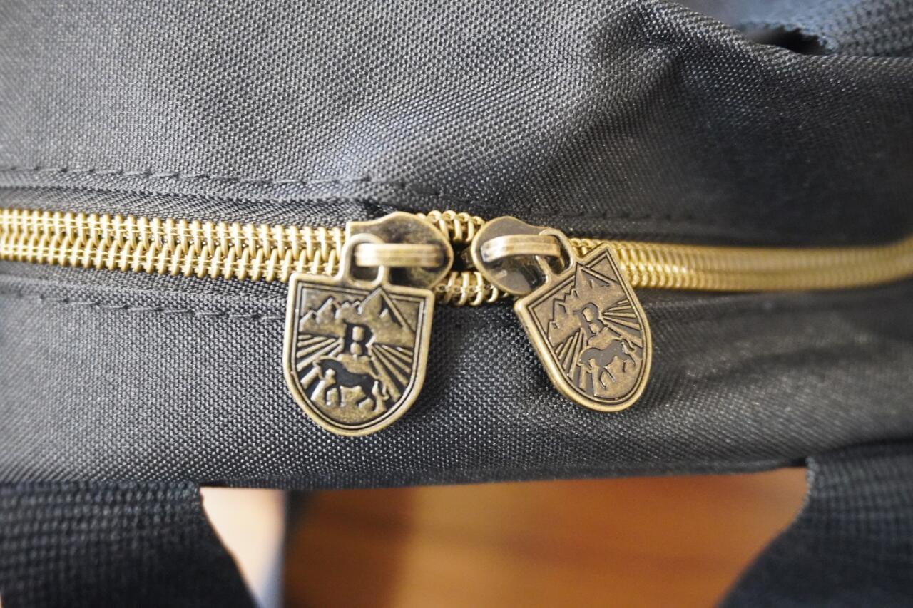 「RISONARE」の織りネームがある収納スペースには、メッシュ素材のファスナーポケットがついています。中に入っている物を確認できるのが嬉しいですね。