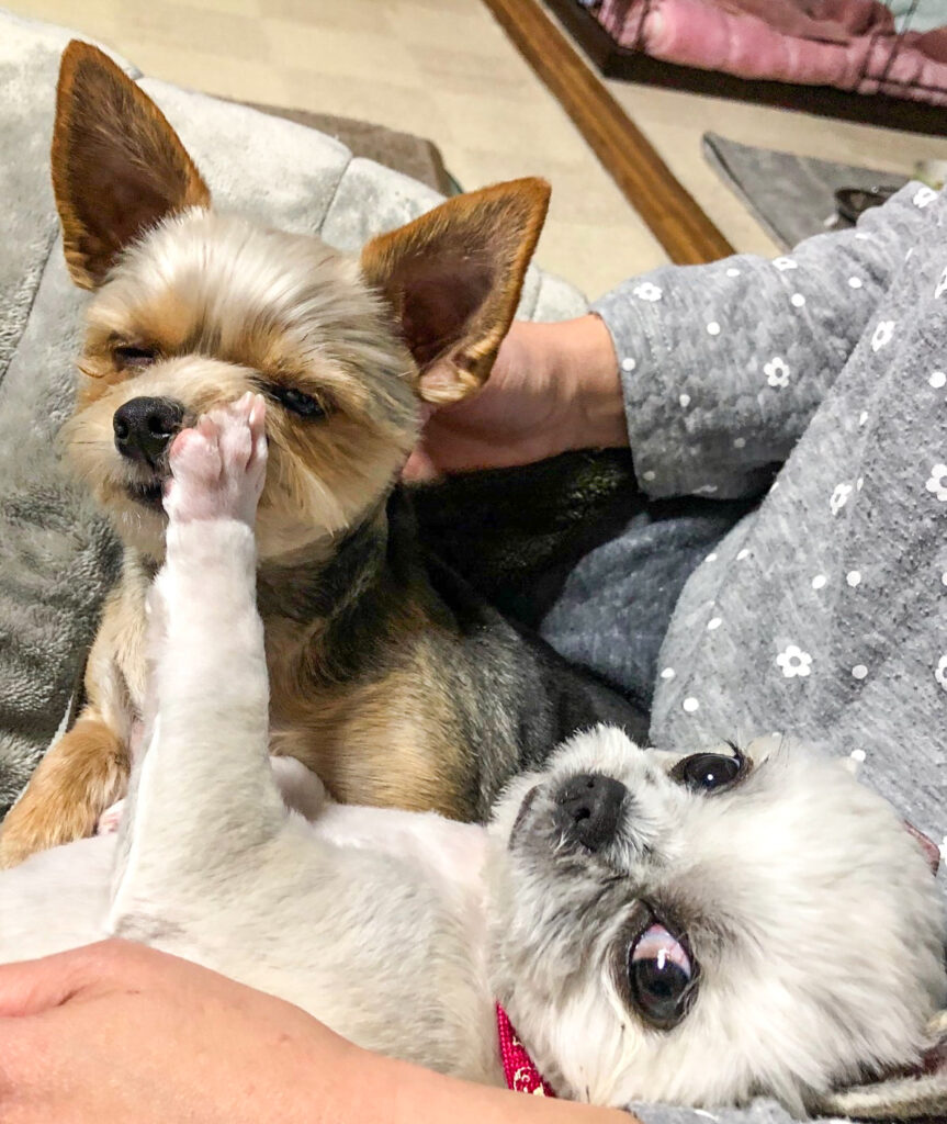 妹わんこのももちゃん(メス、7歳)とも仲良し。