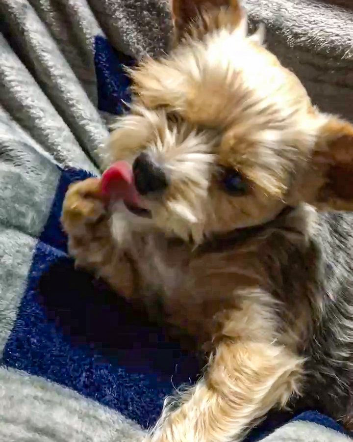 その手の動きは、まるで猫。猫のような仕草で顔を洗うしっかり者のお姉ちゃんわんこ【犬の日企画】