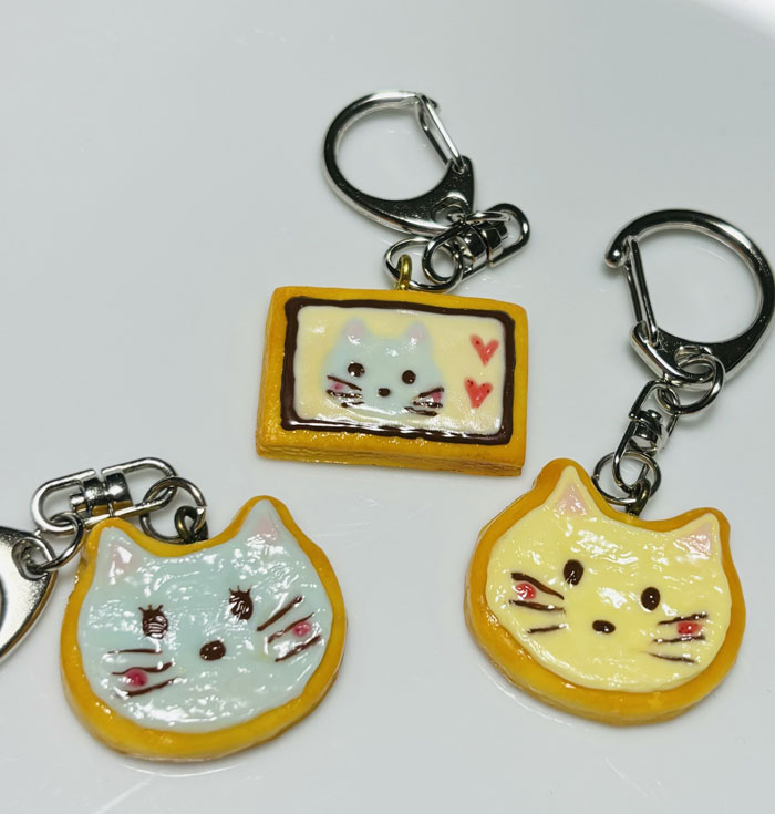 猫・犬モチーフの編みぐるみ、レジンアクセサリー、キーホルダー