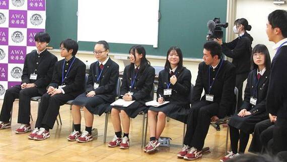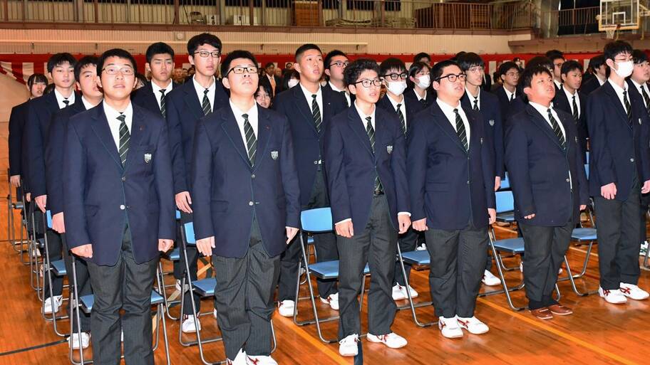 生徒会長の牧嶋那歩さんは「50周年の記念すべき年に在校生としてあいさつできることを光栄に思う」とし、「仲間と共に過ごすかけがえのない毎日が、この先の伊志田高校の生徒たちにも引き継がれることを願っている。これから先も仲間と成長し続けていく」と力強くあいさつをした。