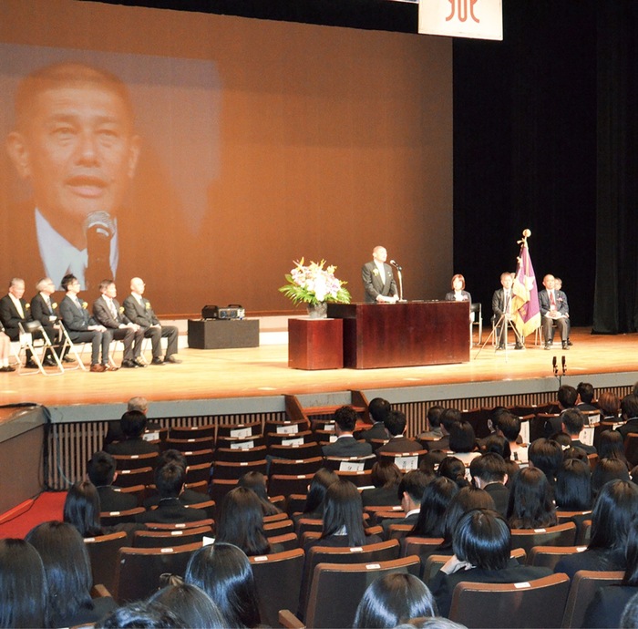 広瀬校長は、初代校長から人間教育に力を入れてきた同校の教育目標が、社会で活躍する多くの卒業生を輩出してきたことをアピール。卒業生でZARDの坂井泉水さんの功績に触れ、「世界中で多くの人が背中を押され、勇気をもらったのでは」と称えた。また在校生の新しい変化への柔軟な対応力やチャレンジ精神を称え、「これからの良い伝統を継承し、自分たちで新しい歴史を築いていってほしい。この中からだれかが50年後の100周年記念式典に参加し、今の思いを伝えてくれたら素敵なこと」と語った。