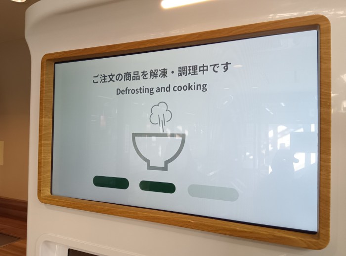 と、配置を確認している間に、液晶の表示は「解凍・調理中」に。どうやら、「装填→解凍→調理完了」の3工程になっているようだ。そんなわけでしばらく待っていると……
