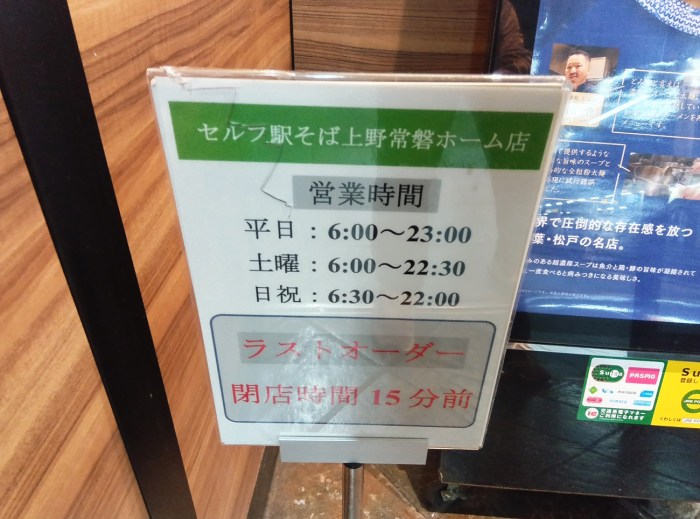 店名 セルフ駅そば 上野常磐ホーム店