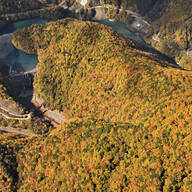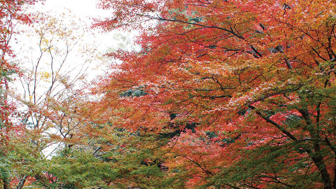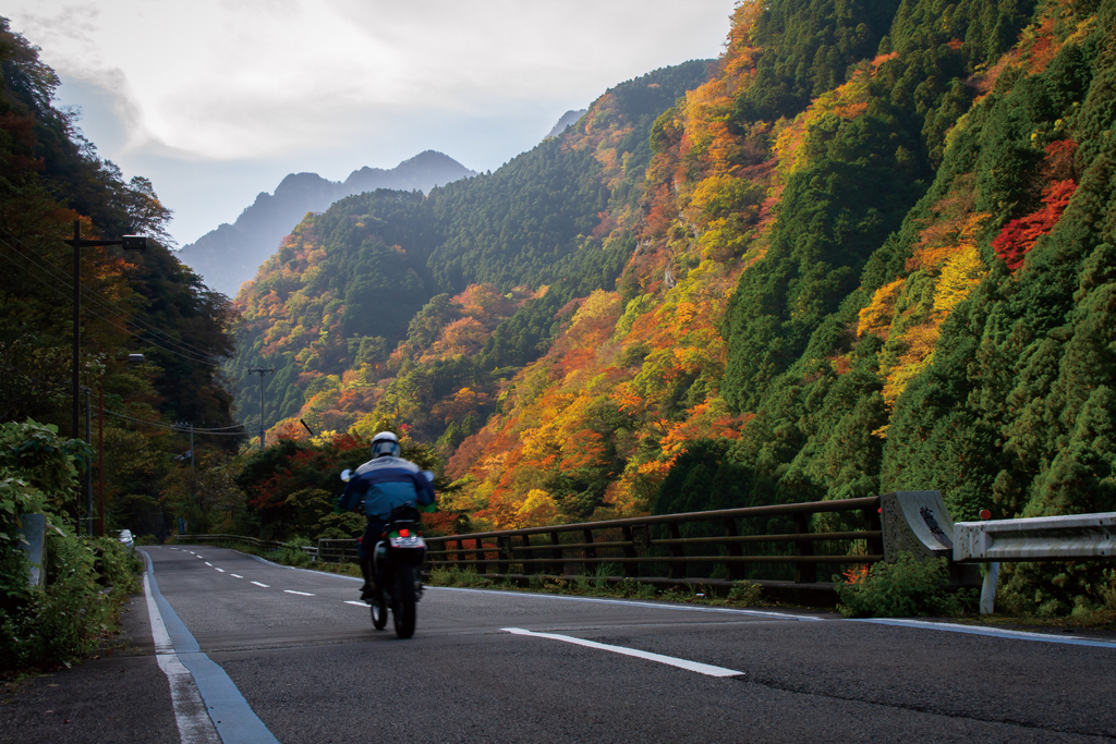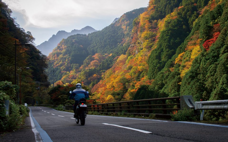 ドイツのライン川にあやかって名付けられた約10kmのルートで紅葉を楽しめる。生子橋からマイントピア別子を過ぎ、時雨橋までの道は眺めが見事。道の駅マイントピア別子の駐車場からは、別子銅山の産業遺産とモミジ、イチョウの美景が見られる。