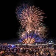 例年以上にスケールアップした5000発の花火が、若戸大橋の夜空を鮮やかに彩ります。