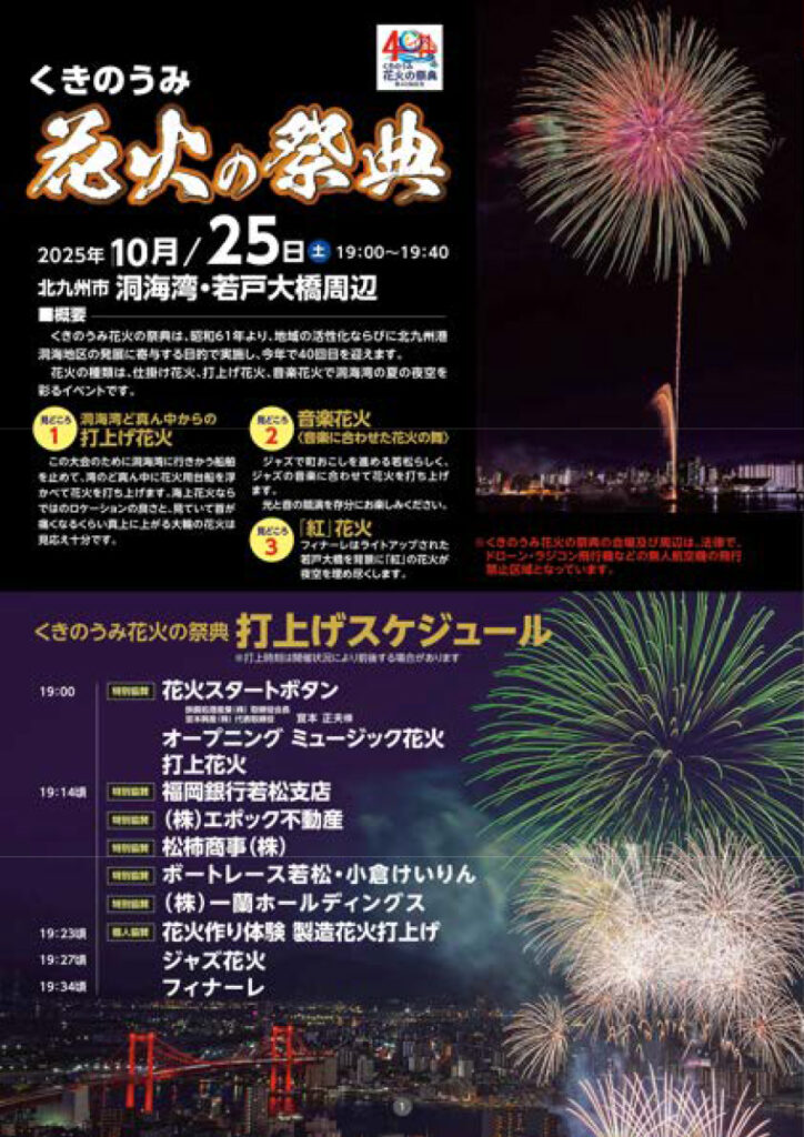 若松の夜空に、40回目の感動が咲く『くきのうみ花火の祭典2025』10月25日(土)開催![北九州市若松区]