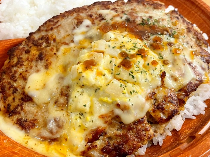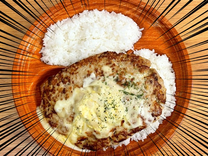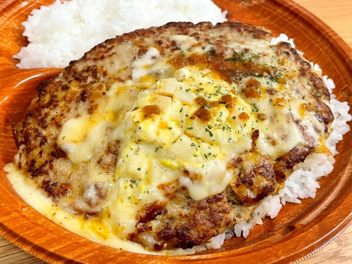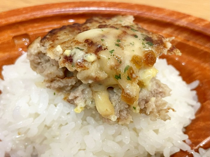 いや、もちろんご飯の上に大きなハンバーグがのっていることは見て分かるが……