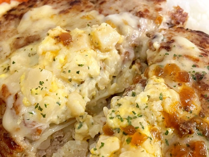 ゴロっとしたじゃがいもと、絶妙な牛豚の合挽肉は意外なまでのマリアージュを奏で、いつものハンバーグとはまた違ったリッチな一面を見せてくれる。