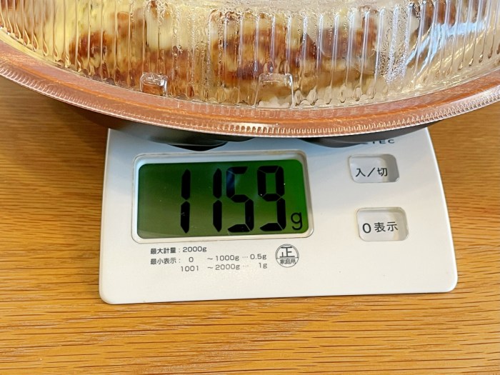重量は貫禄の1kg超え。後で容器の重さを測ったら30gだったので、正確には1.129kgである。ペットボトル飲料かよ。さすがはガリバーといったところか。