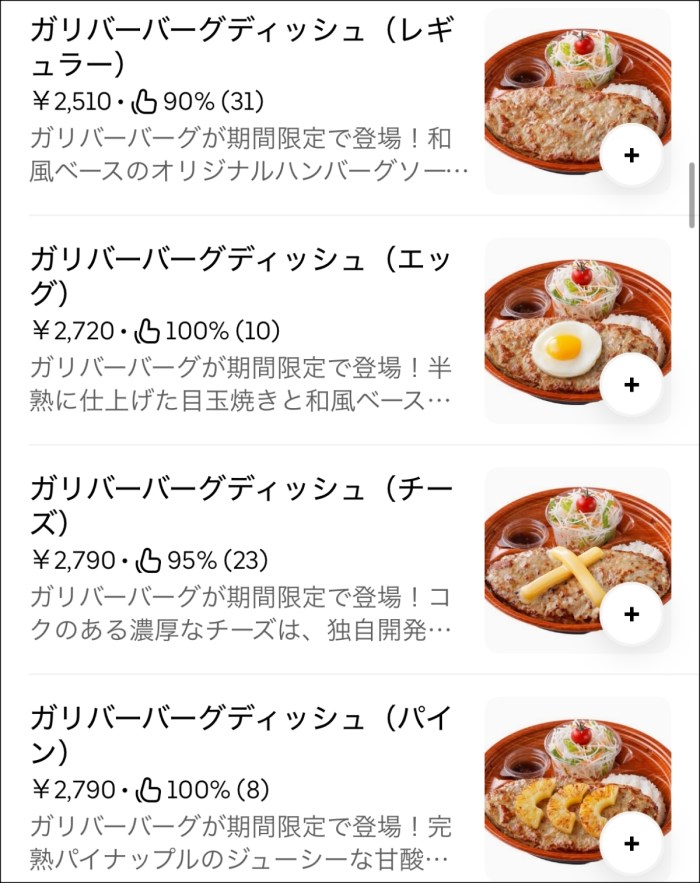画面をスクロールしていくと、なんと期間限定で販売中の巨大な「ガリバー」メニューも選択できるもよう。これ前から気になってたんだよなぁ。