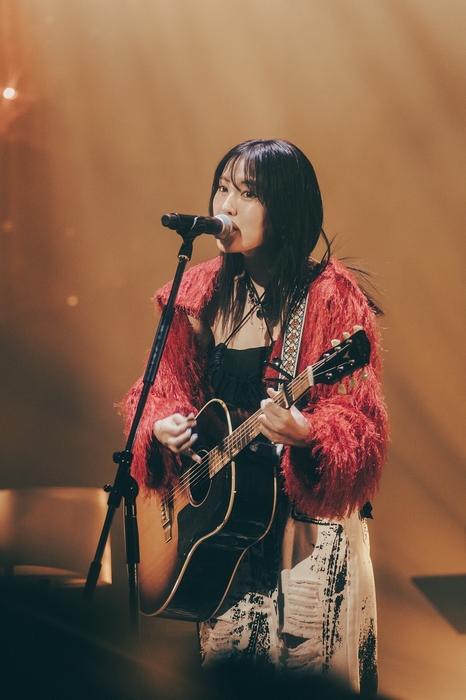 「“愛ってなんなんだろう?”という疑問は、私の音楽の永遠のテーマになっていくんじゃないかなと思っています。自分の叫び、愛の叫び……私の名前も愛なので、“愛の叫び”として『愛‘sCream』というタイトルにしました」――この日にリリースされた1stアルバムのタイトル、今回のツアータイトルでもある『愛‘sCream』について触れた後、音楽に対する想いも語った。「人って悲しいことがあると脳内に張り付いちゃって“嬉しい”という感情に鈍感になってしまう。私はこれからも自分の心の中に生まれた“叫び”を“音楽”という形に昇華したいです。誰かの心の叫びを受け止められるような、“ちゃんとあなたの叫びは聞こえているよ”と寄り添えるような音になってくれたら嬉しいです」――そして披露された「愛‘sCream」。歌う直前に「きっと私が何歳になってもこの曲は大切に歌っていくんじゃないかなと思っています」と言っていたが、強い想いが歌声に込められているのを感じた。ピアノ伴奏と歌のみで幕開けて、ギター、ベース、ドラムが合流。壮大に高鳴ったバンドサウンドに包まれて歌う姿は、一心に祈るかのような清らかさを放っていた。