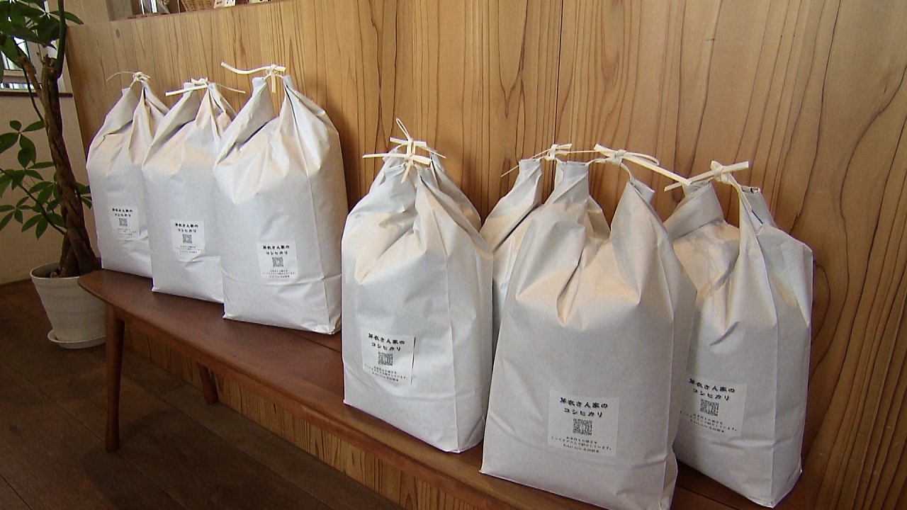 店ではランチやコーヒーを楽しめるだけでなく、自家栽培の米の販売もしています。
