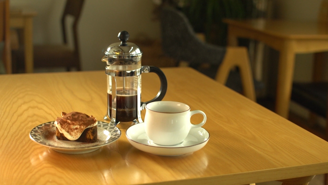 「Mei-Sun coffeeブレンド」は深煎りで、濃厚なコクとしっかりとした苦みが特徴。フレンチプレスで淹れるので、豆の油分や旨味をダイレクトに感じられます。
