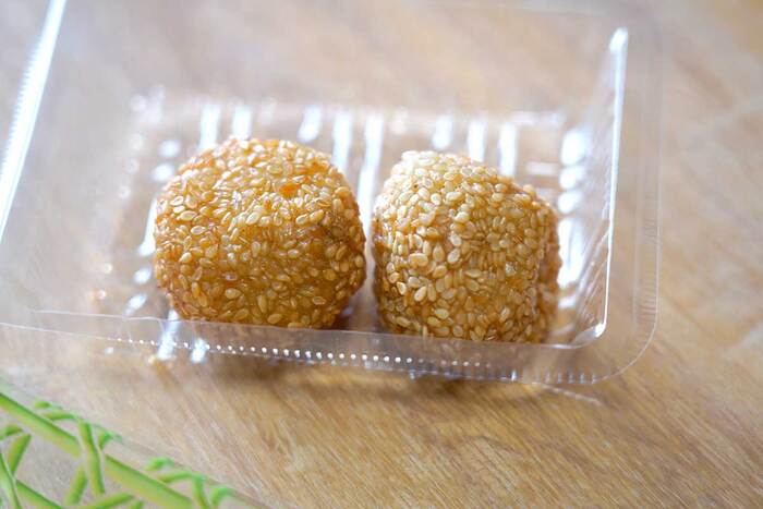 また、1,000円以上購入すると1日先着30食限定で「自家製胡麻団子」が2つもらえます↓