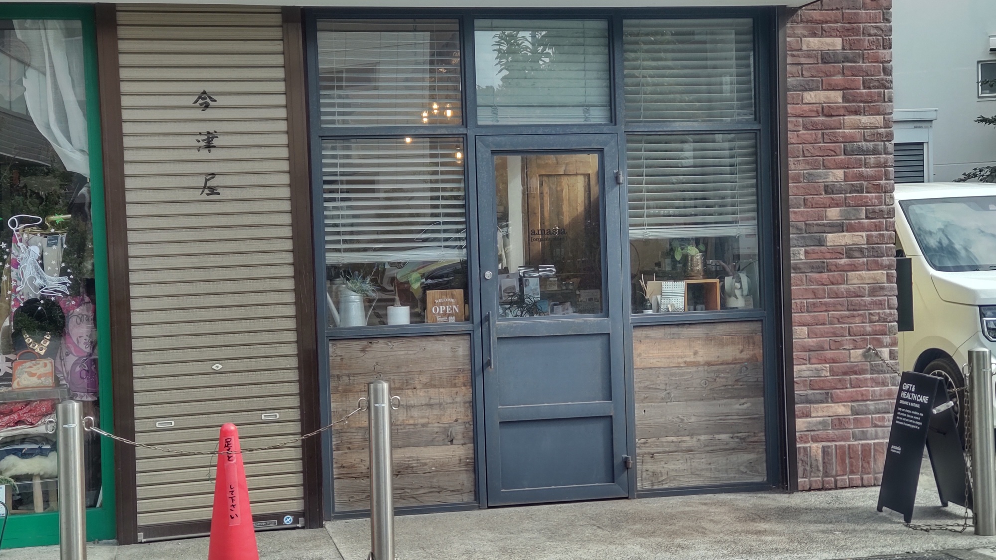 控えめな佇まいのamasia organic storeさん。今回筆者は、自宅用の顔用化粧水を探しに来ました。