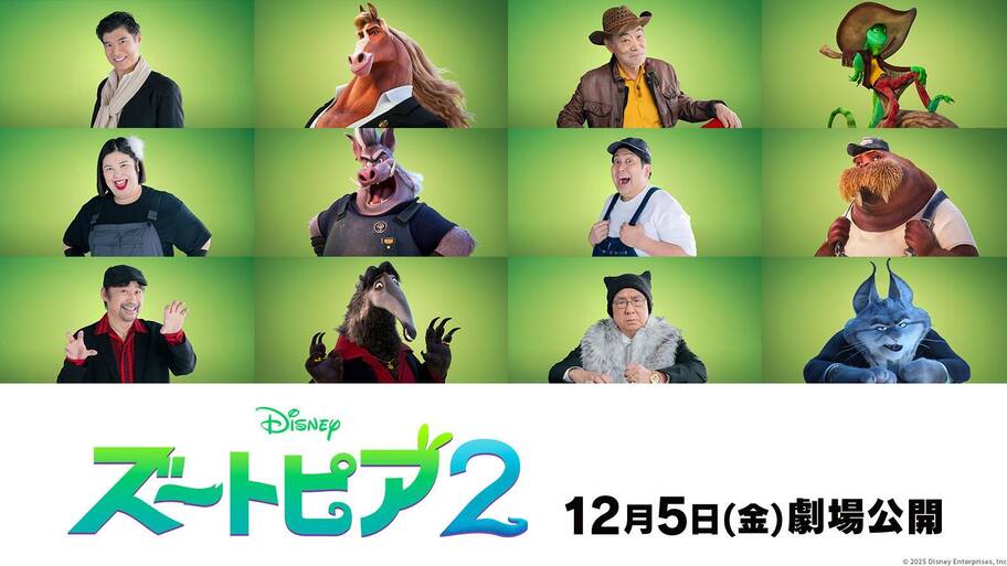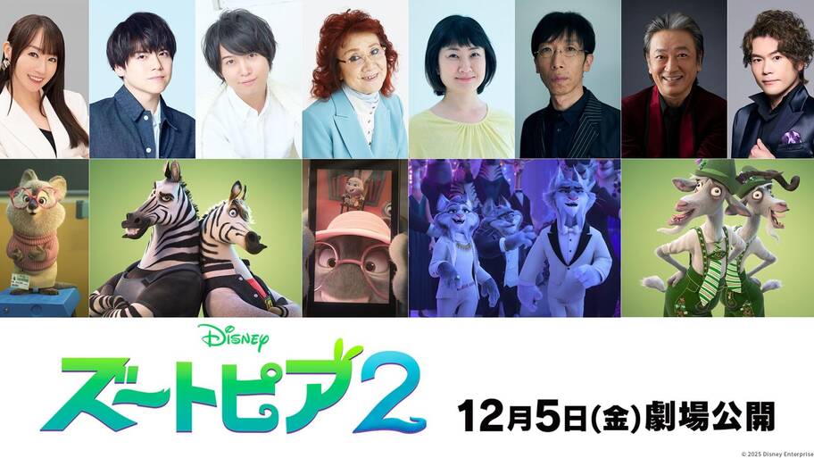 草花を食べ過ぎては咳き込むヤギの登山客【ベルトルト・フーフシュメルツ】役には、舞台「レ・ミゼラブル」や、「ミス・サイゴン」などで知られ、ディズニー・アニメーション『プリンセスと魔法のキス』のホタル、レイ役も務めた俳優・駒田一。ベルトルトの相棒でヨーデルを歌うのが好きなヤギの登山客【ユルゲン・ツィーゲンケーゼ】役には、ヴォーカルグループ LE VELVETS(ル ヴェルヴェッツ)のメンバーで、数多くのミュージカルなどでも活躍する歌手・佐藤隆紀。「レ・ミゼラブル」の舞台でも共演経験がある2人がどんな掛け合いを見せてくれるのか注目だ。駒田は、「ディズニー作品は『プリンセスと魔法のキス』以来2作品目。久し振りでドキドキワクワクでした。ズートピアは私にとっても大好きな作品。皆様にもきっと喜んで貰えると思います。是非、劇場でお楽しみくださいませー!」と、その喜びを口にした。佐藤は「ディズニー映画に出るのが夢の一つでした!声優としての初作品が、大好きな『ズートピア』続編とは!本当に驚きました。どんな感じに仕上がっているのか、今から公開が待ち遠しいです。心踊る『ズートピア2』の世界。一緒に冒険しましょう!!」と、本作への熱い想いを綴った。