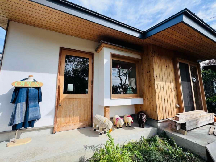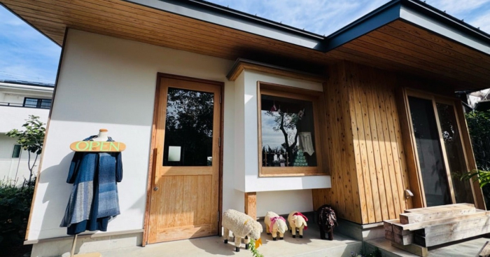 こんなにかわいいショップ♡自宅の敷地内に増築したというお店は、白壁と木の木目がぬくもりを感じる外観です。さあ、中に入ってみましょう。