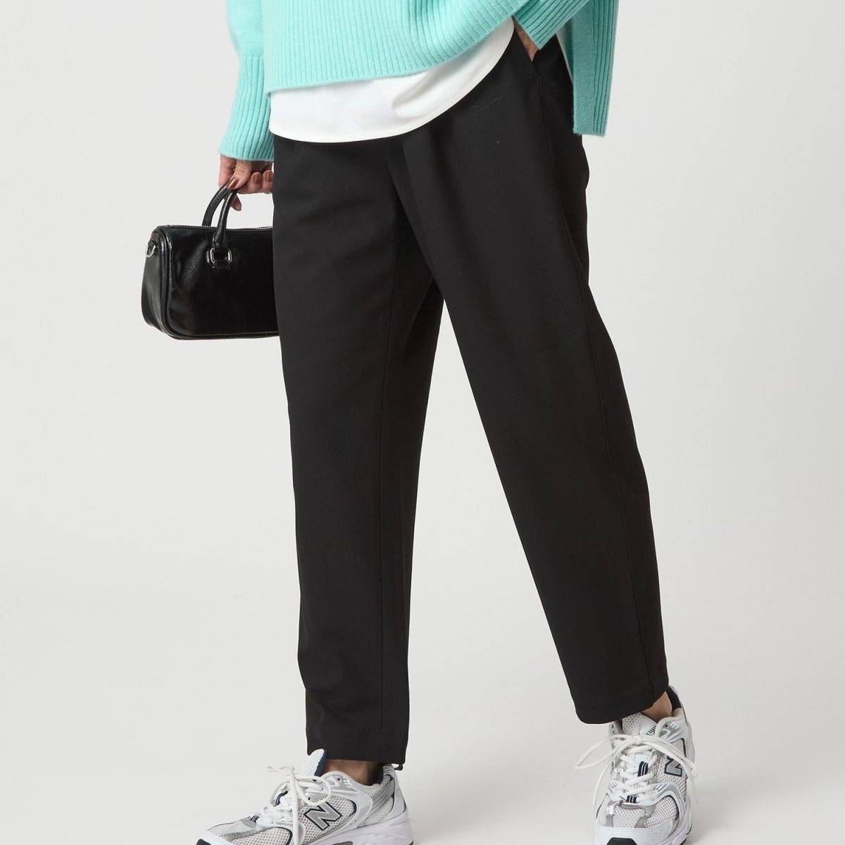 細身すぎず程よくきれいめなシルエットで、オフィスのきちんとコーデにも、ニット×スニーカーのカジュアルスタイルにも合わせやすいのが魅力。