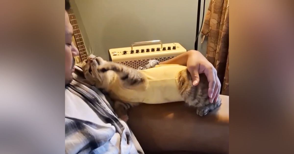 イチャイチャしていた"夫と猫"→撮影に成功した結果…思わず笑みがこぼれる光景に「本当に相思相愛」「何回も見ちゃった」と反響