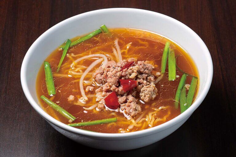 ゲンコツと丸鶏でだしをとったスープに、八角やシナモンが香る台湾ラーメン(辛口715円)。