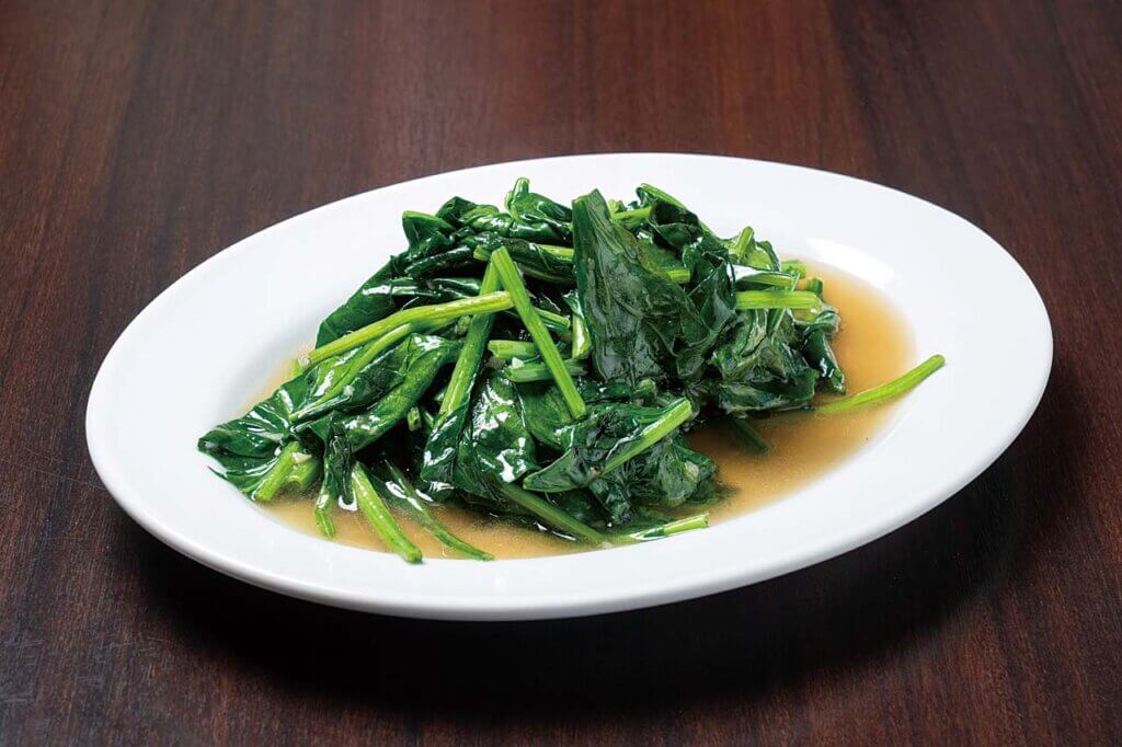 ニンニクや日本酒の風味を利かせた青菜炒め(825円)は、お酒との相性もぴったり。