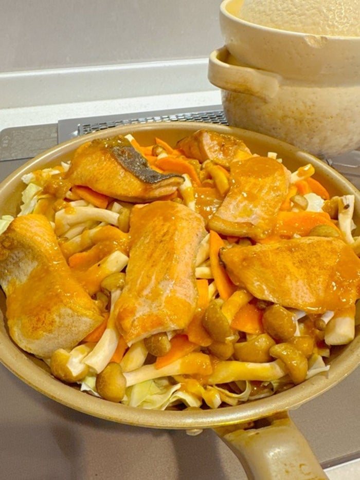 この日、小倉は「今日は、鮭のチーズちゃんちゃん焼きを作りました!」と報告。「久しぶりに作りましたが、お野菜もモリモリ食べられるのがいいですね」とコメントした。
