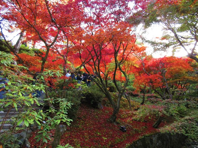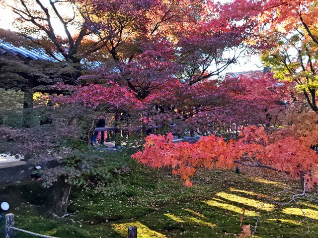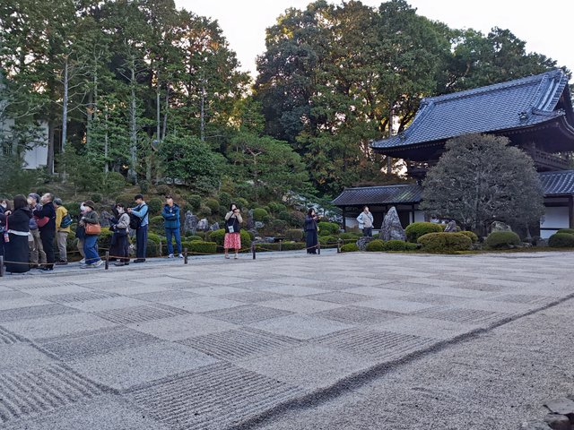 池泉観賞庭園と白砂が美しい枯山水庭園が参道の両側に配され、紅葉の美しさとはまた異なった風情で、ずっと真っ赤な紅葉を見ていた眼には新鮮に見えました。