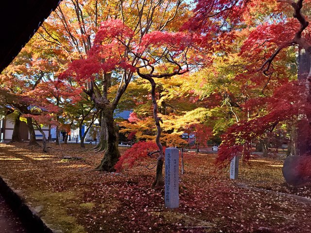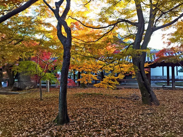通天橋周辺は散り紅葉や赤と黄のコントラストも素晴らしくきれいでした。