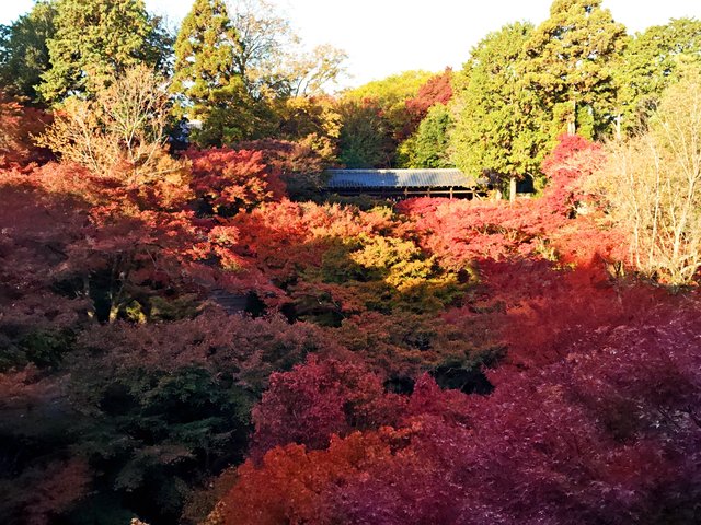 朝日にキラキラと輝く紅葉がとても美しく、通天橋から見える紅葉の海にも感激!