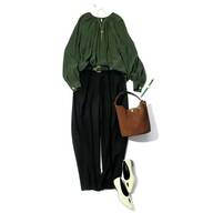 ゆるっとしたシルエットのブラウストップスは、体型が目立ちにくいところが嬉しい♪