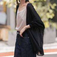 ドルマンスリーブデザインのゆるトップスは、二の腕やウエストまわりが目立ちにくいです。