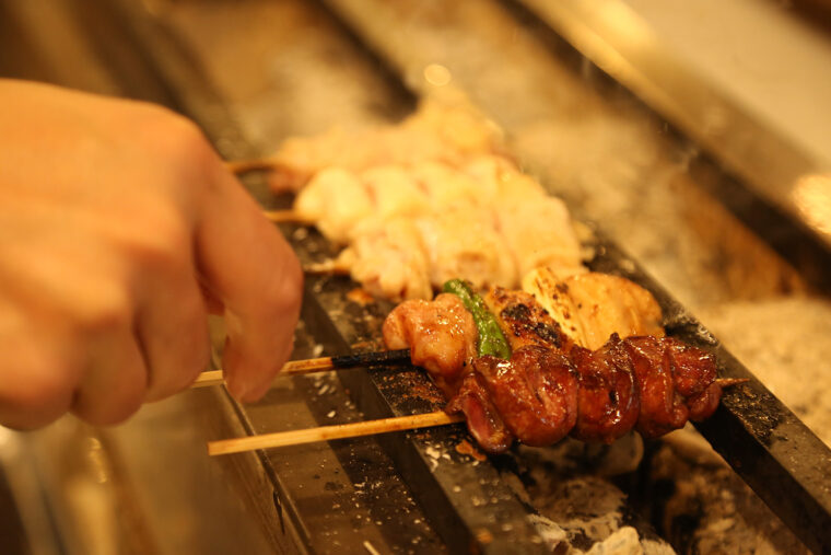 焼鳥と鶏出汁おでん 亀文の看板メニューは、店名の通り、炭火で焼く焼鳥と鶏ダシで仕込むおでん。