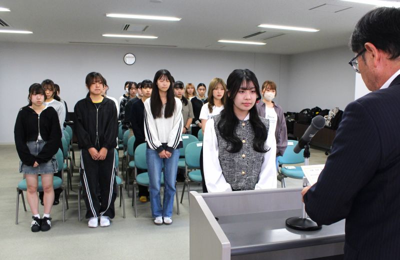 委嘱式は同市萱生町の大学であり、市川和彦・市健康福祉部長が学生の代表、石崎妃南さん(1年)に委嘱状を手渡した。市川部長は「民生委員は地域のセーフティーネットともいえる存在です」と話し、啓発活動などへの参加もお願いした。石﨑さんは式後のインタビューに「これからの活動で子どもや高齢者とお会いして、自分の成長にもつながると期待しています」と話した。
