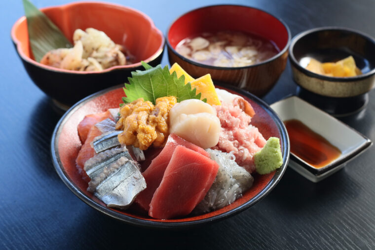 海の幸が丼いっぱいに詰まった『近海産 海鮮丼』は人気メニューのひとつ。
