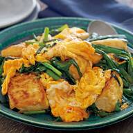 ほうれん草を炒めたら溶き卵を入れて成形するだけ。