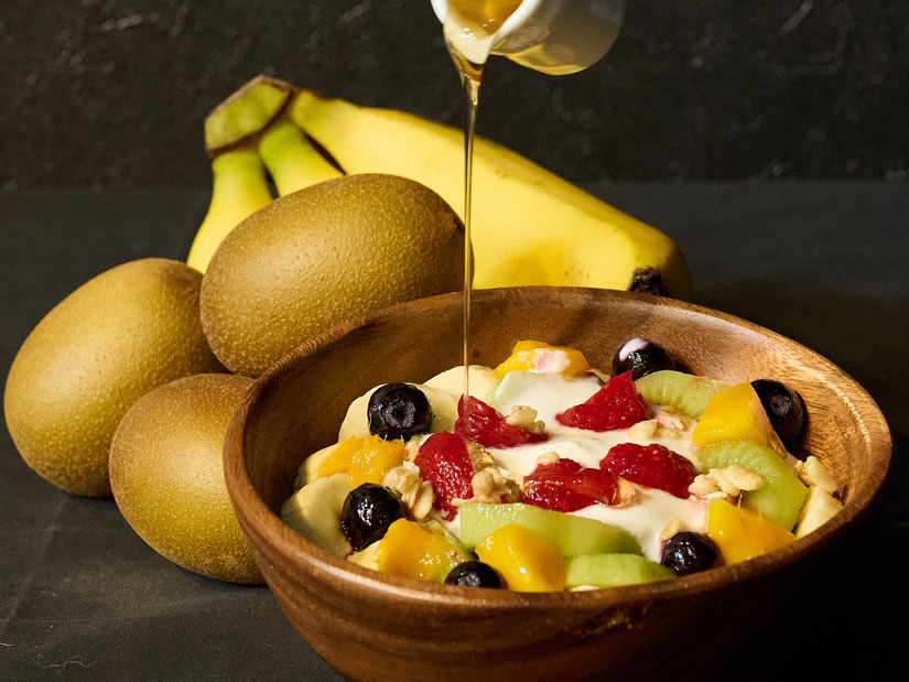 アサイーをベースに、キウイやマンゴー、いちご、ブルーベリーなどのフルーツをたっぷりトッピング。仕上げにハチミツをとろりとかければ、朝にぴったりの爽やかな甘さが口いっぱいに広がるひと皿に。彩りも鮮やかで、エネルギーをチャージしたい朝にぴったりです。