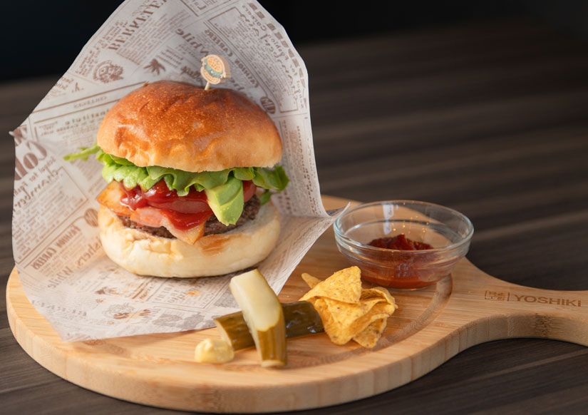 国産牛100%のパティに、アボカド・ベーコン・トマト・レタスを重ねた、王道ながらも満足度の高い一品です。レタスとトマトは長野県産を使用し、フレッシュな食感と甘みが、ジューシーなパティとのバランスを引き立てます。