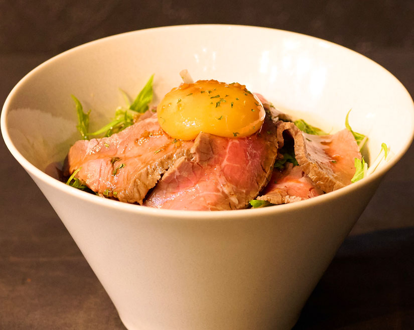 3日かけて丁寧に仕込む「ローストビーフ丼」(1419円)。低温でじっくりと火を入れたロゼ色の肉は噛むほどに旨みが広がるのだそう。