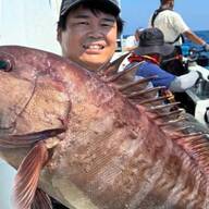 前日ほどの潮流はなく、海は落ち着いている。左舷トモの福西隆敏さんがさっそくアタリをとらえ4kg級をキャッチ。