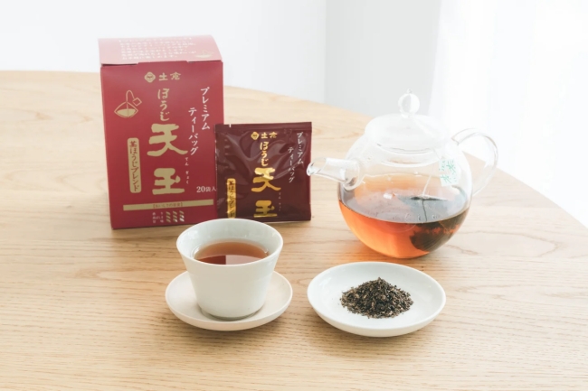 『プレミアムティーバッグほうじ天玉』(標準小売価格 税抜500円)は、『土倉』の茶師が厳選したほうじ茶葉にふっくらと芯まで炒り上げた茎ほうじをブレンド。フィルターにはナイロン紗が採用されているため、急須で淹れたような味わいを手軽に楽しむことができます。