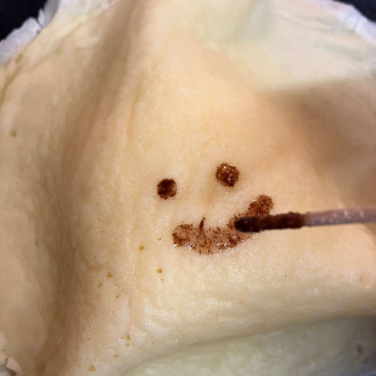 少量の水で溶いたココアを使って、クレープに絵を描いたらできあがり♡