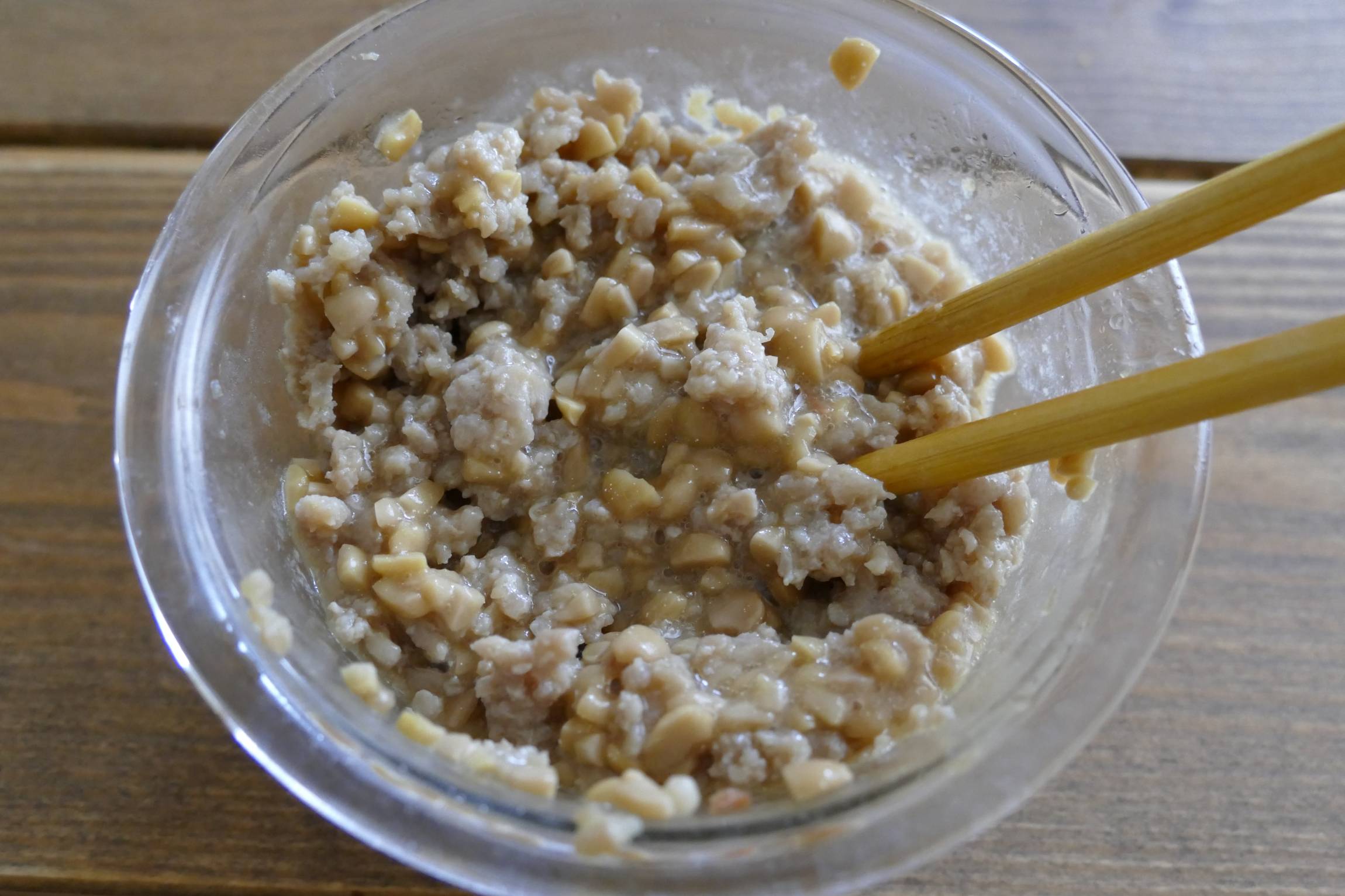 使用する納豆は、鶏そぼろとなじみやすいひきわり納豆や小粒納豆がおすすめです。