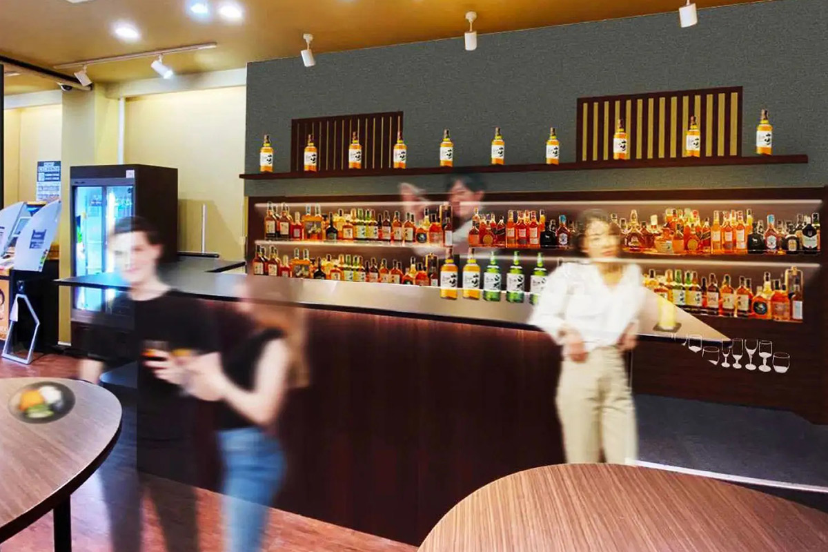 チャージ無料・1杯500円から楽しめるBAR「お酒の美術館」のコラボ店舗。オリジナルブレンド樽ウイスキー「祇園」をはじめ、国内外の人気ボトルも揃います。
