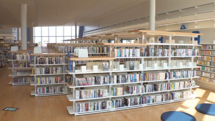 開館時間は午前8時30分から午後10時まで。2階と3階は午前9時から平日は午後7時まで、土日祝日は午後6時までです。本を借りられるのは、市民、または市内に通勤通学する人です。施設を利用するときは、駐車場が17台分しかないため市役所を利用できます。市では駐車場の工事を進め、来年度には50台以上が停められるようになる予定です。