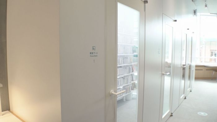 2階は「創造の場」で、机の配置を自由に変えて使うことができます。防音の部屋や個室の学習スペースがあります。