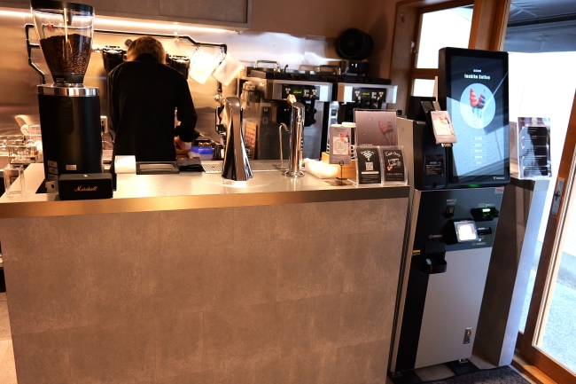 店内に入ったら、すぐ右手にある端末で先に注文と支払いを済ませ、カウンターで商品を受け取ります。