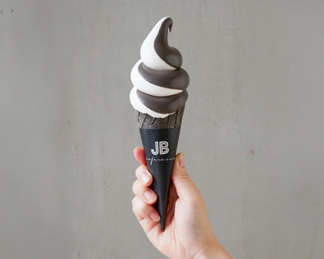 モノクロのコントラストが目を引く『JBソフトクリーム(ブラック×ホワイトミックス)』(700円)も、『稲彦珈琲』のいちおしメニュー。京都の『丹後ジャージー牧場』で育った牛からとれた『ジャージー牛乳』を使用したミルクソフトクリームは、フレッシュな風味と濃厚なコクの両方を楽しめるのが特徴です。チョコレートソフトクリームと組み合わさったリッチな味わいは、これから寒くなる時期にも食べたくなる味です◎
