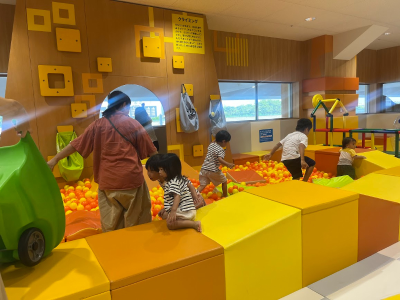 地元の子どもたちからは、「これまで30回は来たよ!」という声が聞かれるほど、浜名湖周辺の遊び場として定着しているようです。室内は涼しく保たれていますが、子どもたちは夢中になって遊び、汗びっしょり。一緒に体を動かす保護者の姿も多く見られ、家族みんなが最高の笑顔を見せていました。
